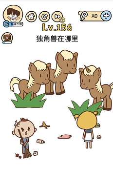 《脑洞大大大》关卡156:独角兽在哪里?谜底操作方式:将地上的冰淇淋捡起来放到小马的头上,就酿成了独角兽了。