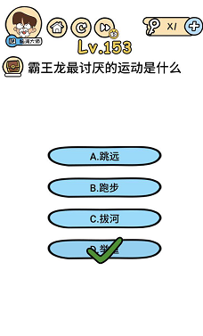 《脑洞大大大》关卡153:霸王龙最厌恶的活动是什么?谜底【D举重】因为霸王龙的前肢长短常短小的。