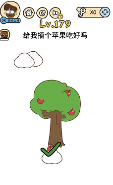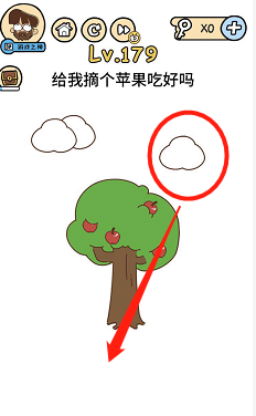 《脑洞大大大》关卡179:给我个苹果吃好吗?谜底操作方式:将云朵移动下来放到树的下面,点击苹果树,苹果会失落下来落到云朵上。