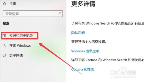 点击左侧的“权限和汗青记实”选项。