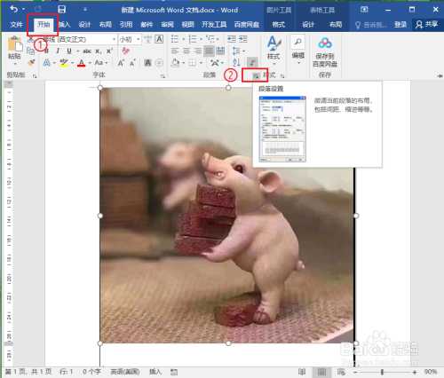 选中图片,依次点击【起头】选项卡>>【段落设置】按钮。