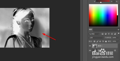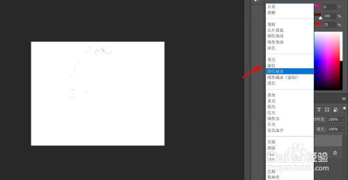 然后在夹杂模式中,点击选择“颜色减淡”。画面变为几乎为白色。