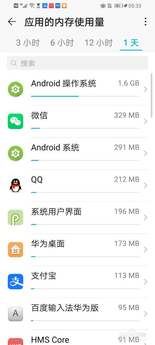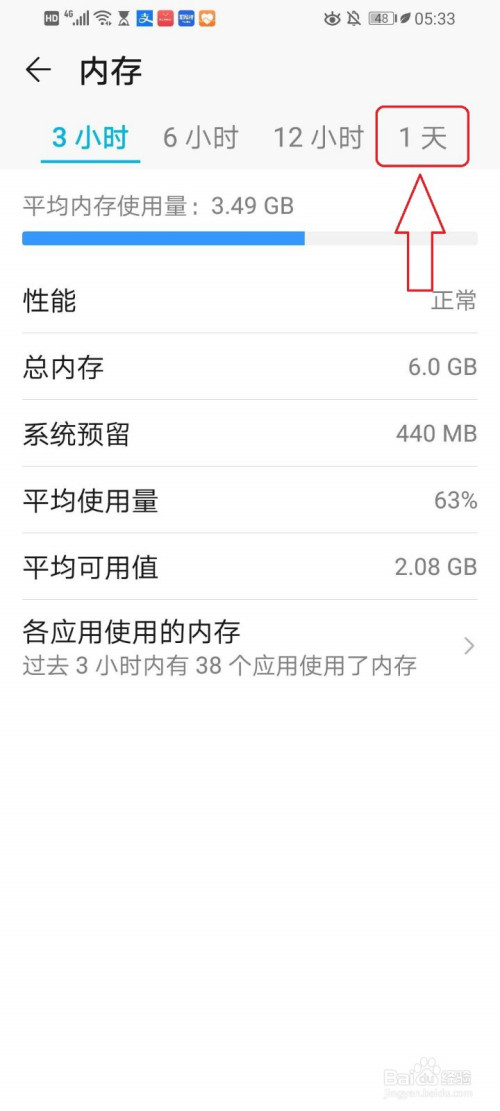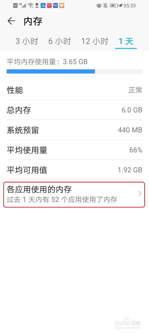 ●点击【各应用利用的内存】,查看运行内存的利用详情。