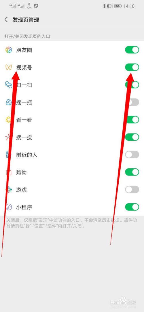 进入发现页办理之后我们就能看见发现页的良多功能,我们可以选择封闭一些本身不喜好的功能。点击后面的开关即可封闭,绿色的代表打开,灰色的代表封闭。