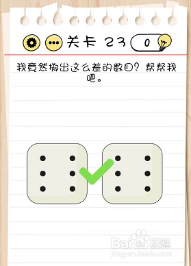 脑力测试过关攻略关卡23:我竟然抛掷出这么差的数量?帮帮我吧!谜底攻略:摇摆手机,骰子就会变换点数到两个6.