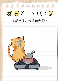 脑力测试过关攻略关卡21:汤姆饿了。抓住那老鼠!谜底攻略:1.先把火打开;2.把鱼罐头放到火上去烹煮。3.被热到的老鼠会从鱼罐头中出来,再点击老鼠。
