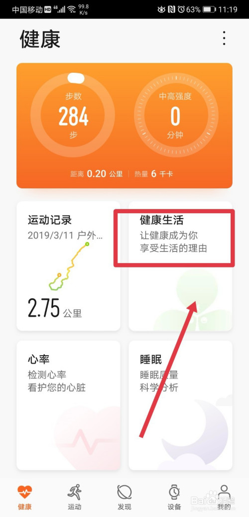 在活动健康首页,找到健康糊口功能,点击打开;
