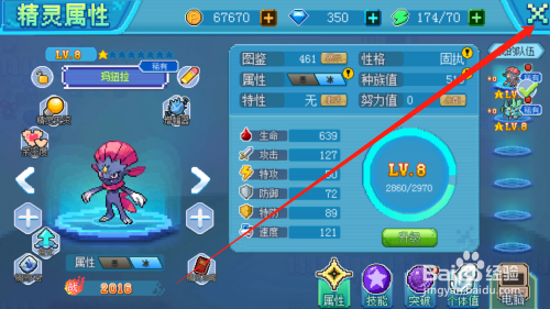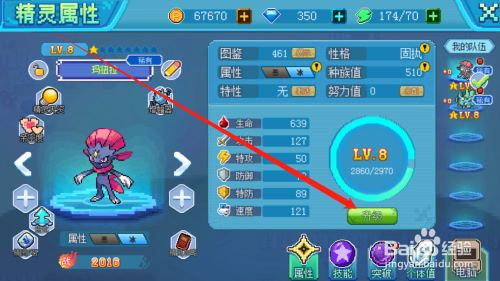 点击进级按钮,进级精灵,增添属性