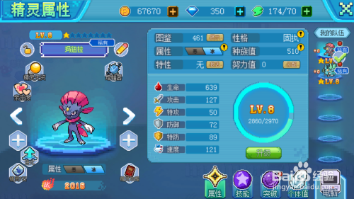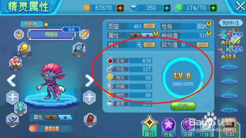 可以看到精灵的当前品级以及属性