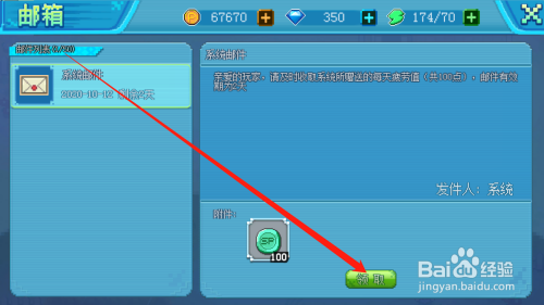 点击领取按钮,领取邮件奖励