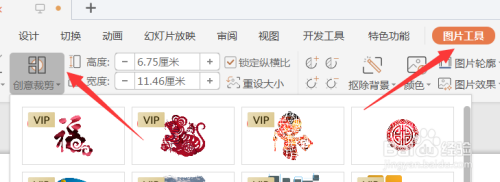 再选择菜单栏里的图片东西--创意剪裁--选择合适的外形。