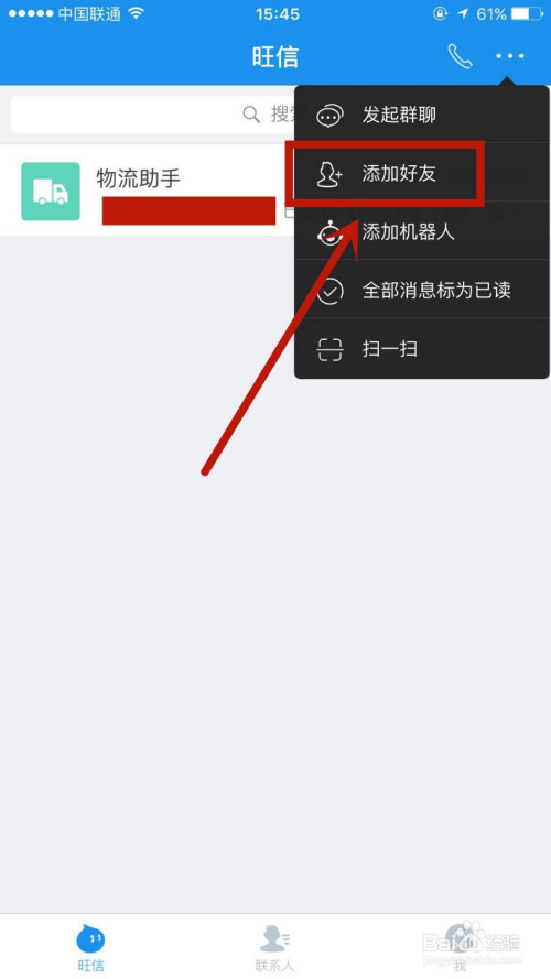 1.打开旺信,点击页面右上角的 ... 小标进入添加老友。