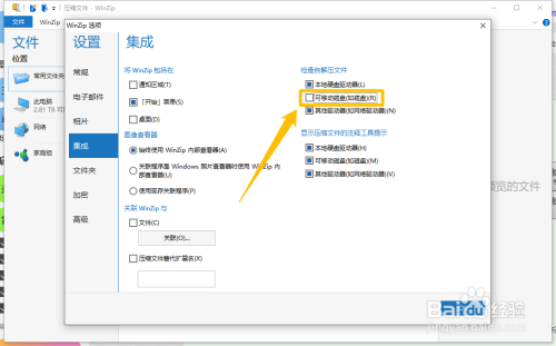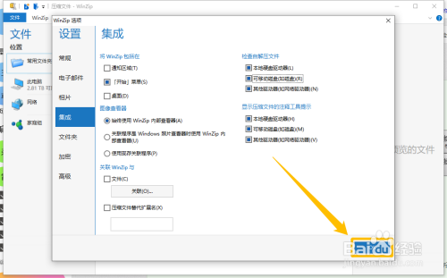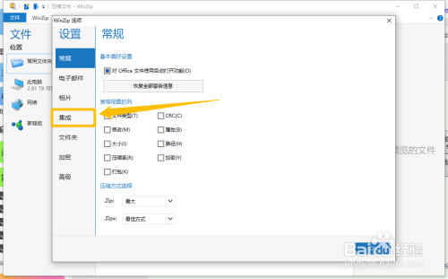 点击上方的“WinZip”菜单项后,在睁开的功能区中选择“设置”图标。