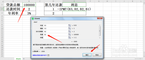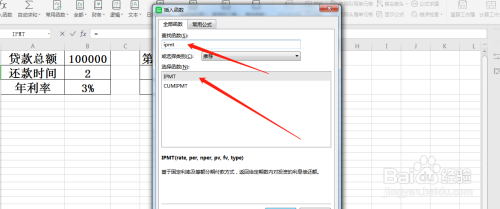 按年计较还条目利钱,输入“IPMT”函数,然后确定。