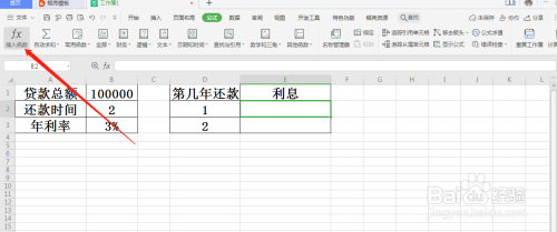 按年计较还条目利钱,点击利率的空白处,选中3%的单位格。