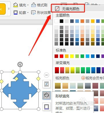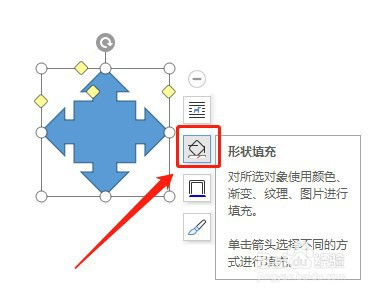 点击选中文档中的十字箭头标注,点击右边的【外形填充】图标