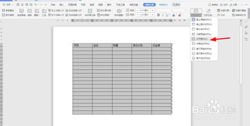 然后输入表头的内容,选中表格,点击“表格东西”中的“对齐体例“,选择”程度居中”