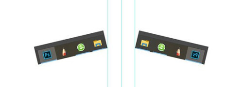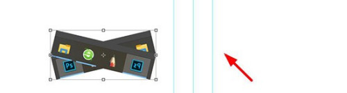 第五步,用键盘上的摆布箭头移动两张图片,使它们关于中心那一条参考线摆布对称。