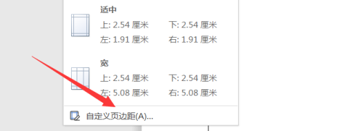 弹出自界说页边距的对话框进行设置即可。