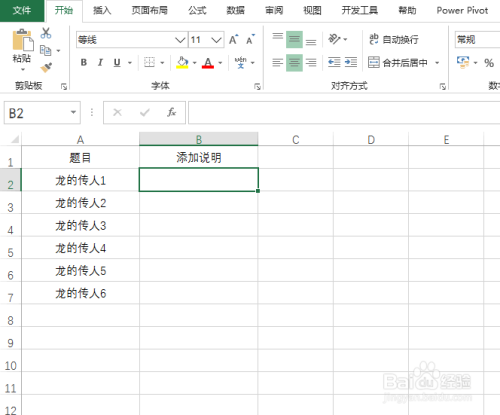 首先,在一空白单位格中,输入含申明文字的数据,具体如图所示: