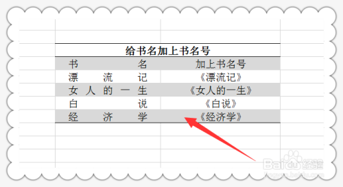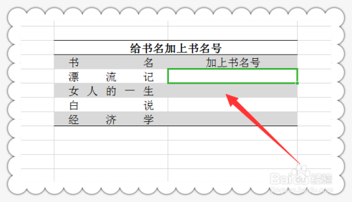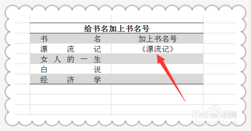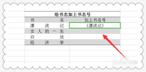 选中刚加好书名的表格,如下图所示,按住快捷键Ctrl+e进行填充即可。