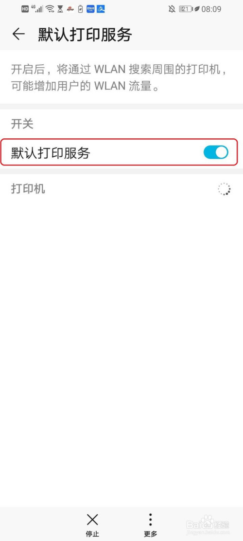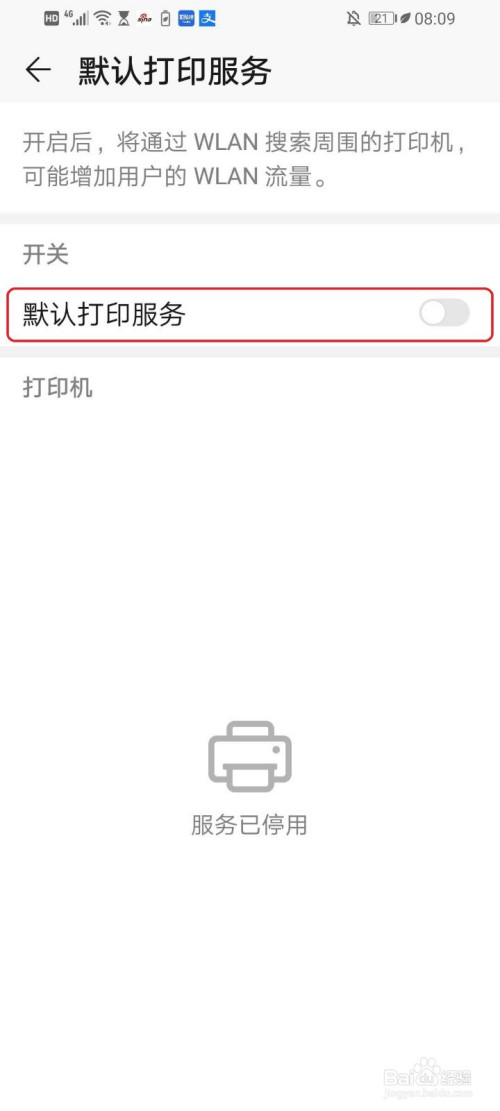 点击”默认打印办事“右侧的开关。
