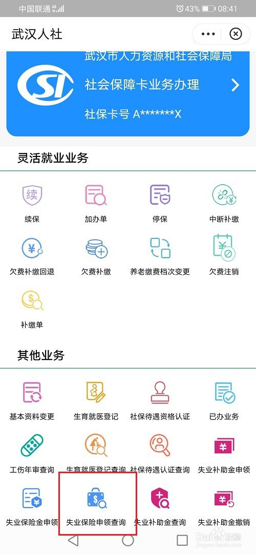 第四步进去之后,点击掉业保险申领查询,可以查看掉业金是否到账