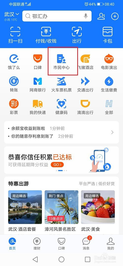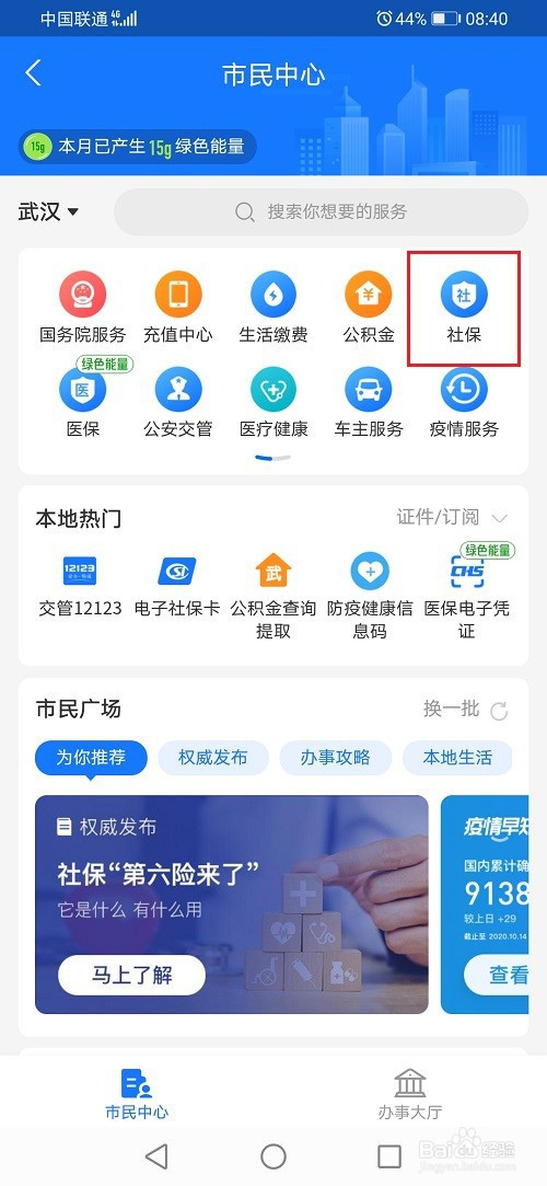 第二步我们可以查询掉业金领取记实来查看是否到账,打开支付宝,点击市平易近中间,然后点击社保
