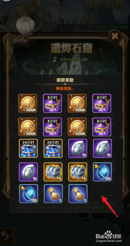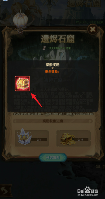 点击右侧的宝箱,即可查看该关卡的摸索奖励信息。