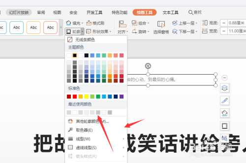 在轮廓属性中,选择更改轮廓颜色、宽度以及线型等属性