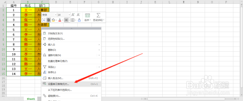 改变单位格底纹颜色,鼠标右击,然后点击设置单位格格局。