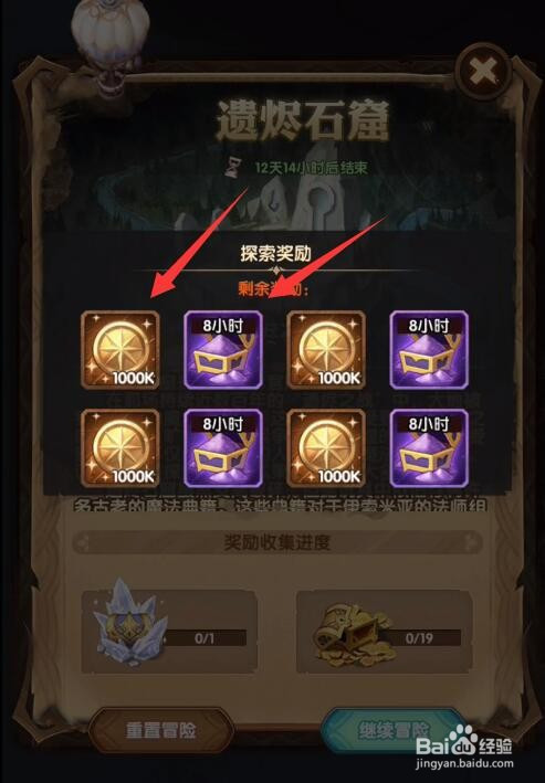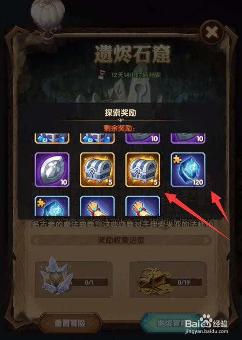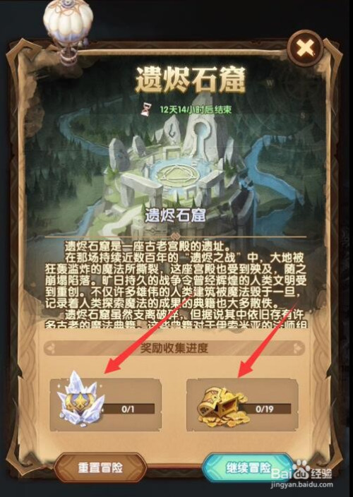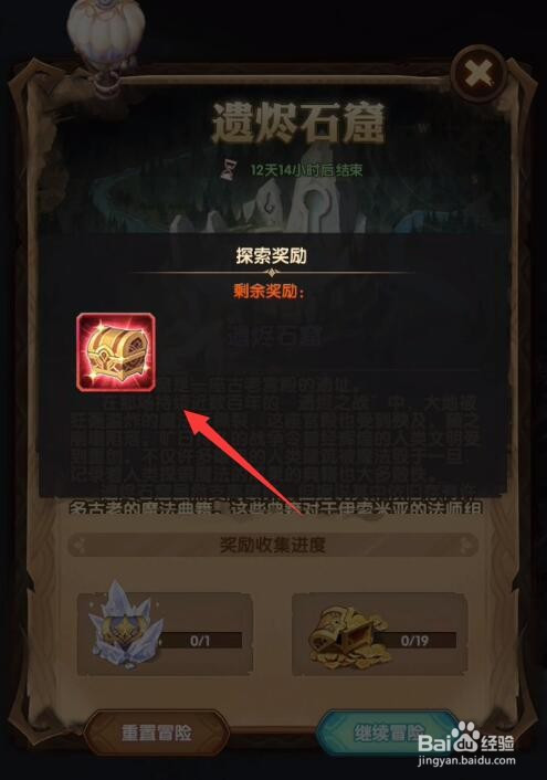 1、遗烬石窟共有1个大宝箱还有19个小宝箱。