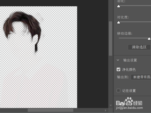 调整边缘画笔修剪头发区域,勾选净化颜色;
