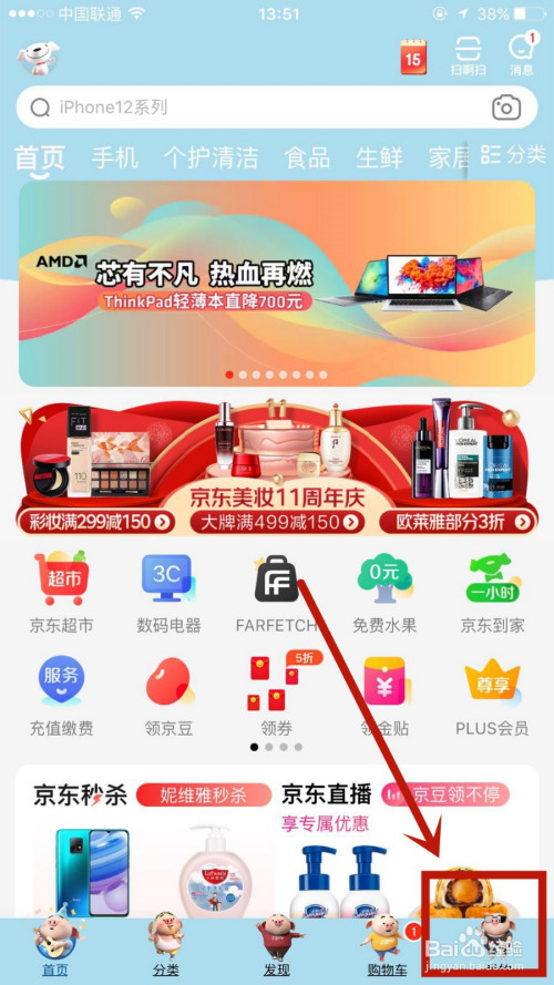 1.打开京东,点击右下角的我的。