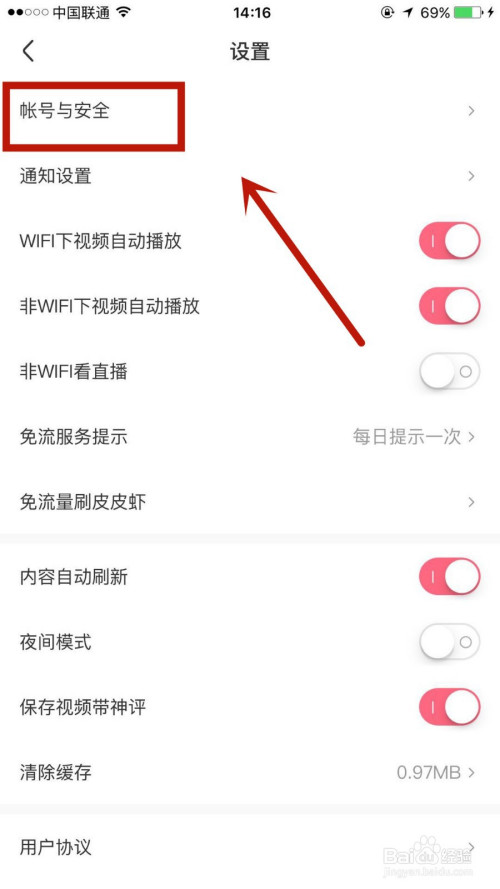 在设置页面,点击进入帐号与平安。