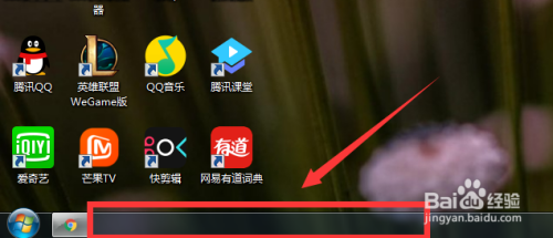 这时查看win7使命栏处已主动埋没。