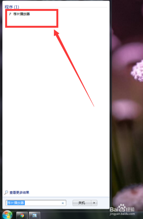 首先从win7开始菜单,搜刮并点击“荐片播放器”。