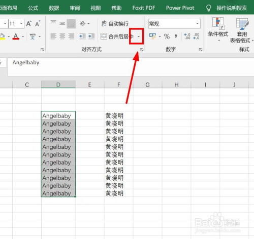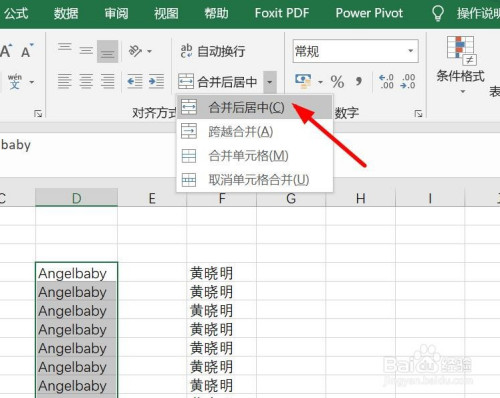 然后选中归并后的单元格,点击“垂直居中”图标。
