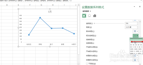 选中上述折线图,并右键,点击“设置数据系列格局”,具体如图所示: