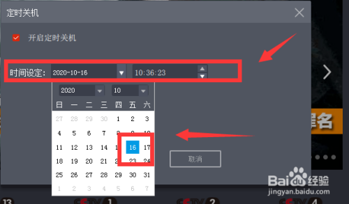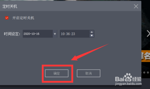 接着在按时关机处,勾选“开启按时关机”。