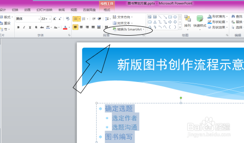 最后我们在幻灯片中即可看到转化的SmartArt图形。