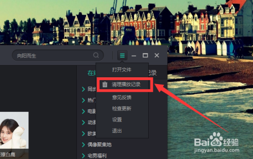 3.然后菜单打开窗口里,点击“清理播放记实”选项。
