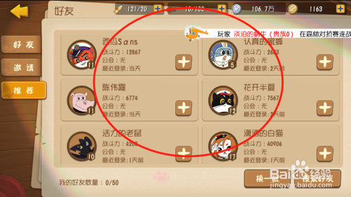 可以看到保举的老友列表