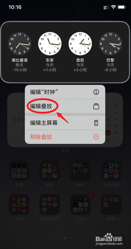 进入苹果手机系统后,长按需要编纂的智能叠放组件。