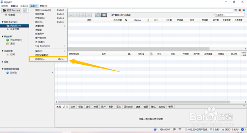在“BiglyBT”本家儿界面中,点击上方的“东西(T)”菜单项。