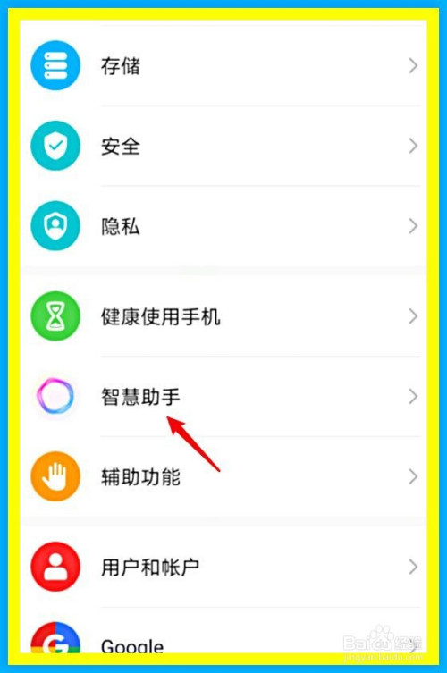 在设置的本家儿界面中,点击进入聪明助手的选项。