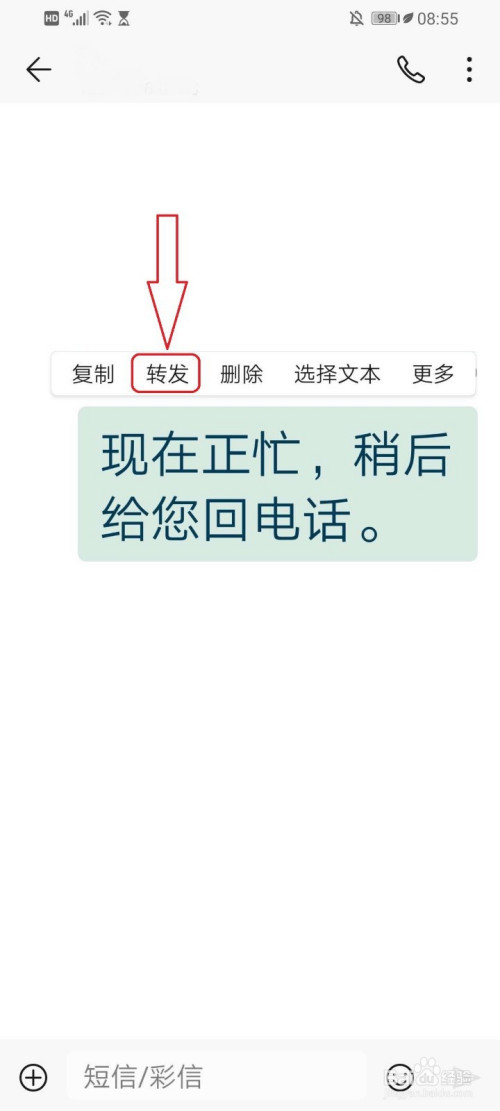 打开要转发的短信,然后长按。