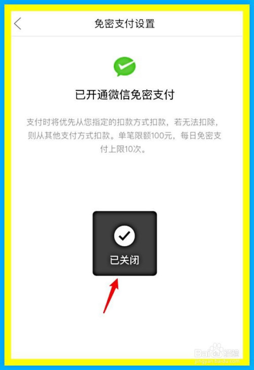 在微信免密支付的本家儿页面中,点击进入下方的封闭微信免密支付。