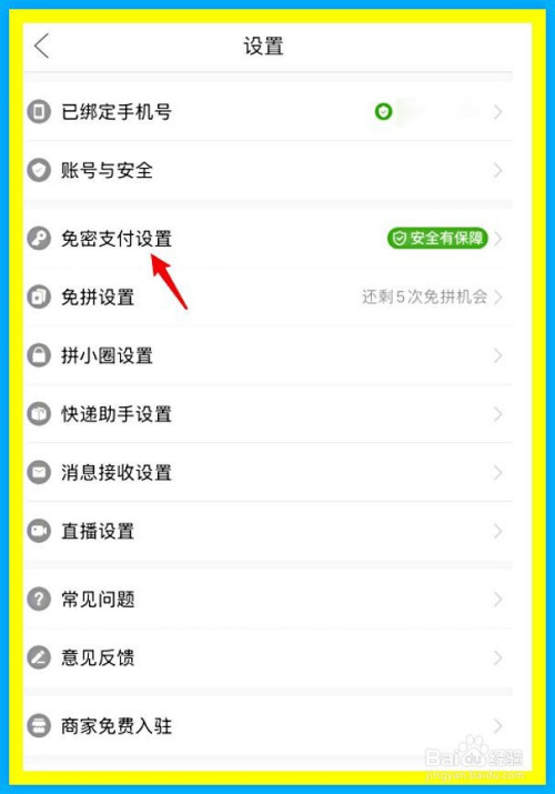 进入到设置的本家儿页面中,点击进入免密支付设置的选项。