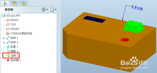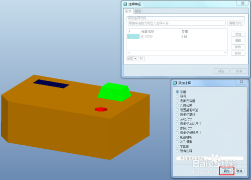 注解对话框点击确定,注释对话框点击确定,完当作注释特征的建立。